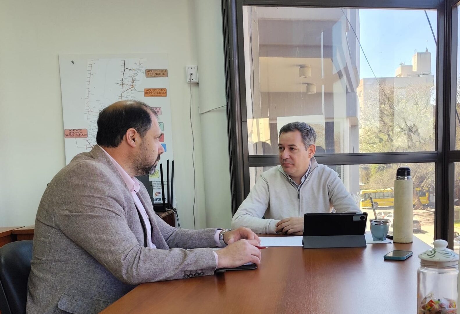 En sede de la Secretaría de Agua y Saneamiento del Ministerio de Obras Públicas, Barbero se reunió con Leonel Marmiroli al efecto de repasar los avances y próximas acciones en la obra de desagües cloacales, que se ejecuta con financiamiento del Estado provincial y que, si bien cuenta con un importante grado de avance, ha padecido diversos inconvenientes que han obligado a modificar su planificación y a extender, en reiteradas ocasiones, los plazos pautados.